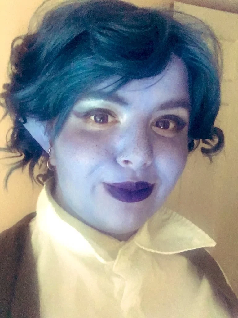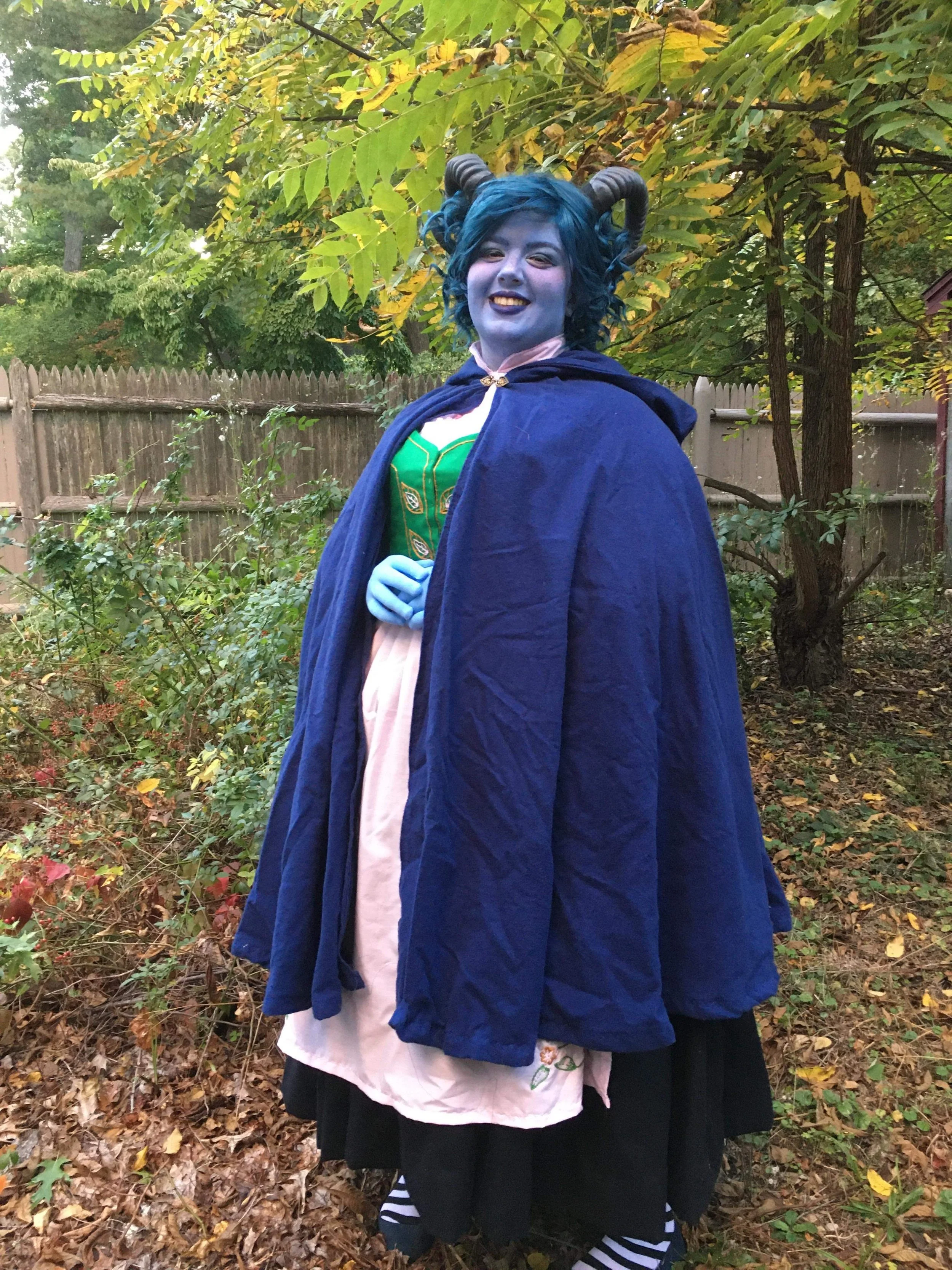 In mid-2020, in the midst of the COVID-19 lockdown, I was inspired to create a costume of Critical Role’s Jester Lavorre, but one of my own making. Taking from historical fashion and the lines of Norwegian bunad, I developed a look of my own for the cheerful blue tiefling. Reproduced here is the full development process.